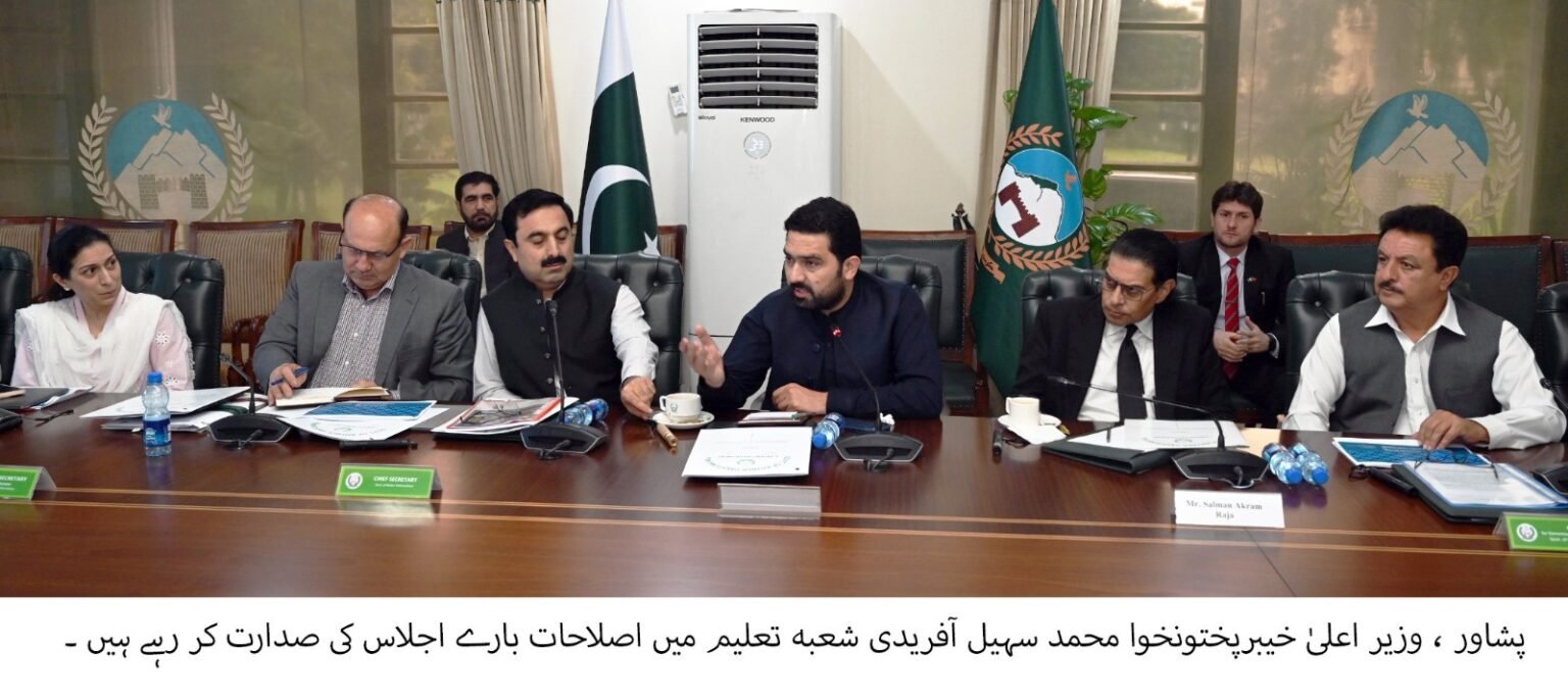 پشاور: وزیر اعلیٰ خیبرپختونخوا محمد سہیل آفریدی کی زیرِ صدارت تعلیم کے شعبے میں اصلاحات کے حوالے سے ایک اہم اجلاس منعقد ہوا جس میں جاری اصلاحاتی اقدامات پر پیش رفت کا جائزہ لیا گیا اور مستقبل کے لائحہ عمل پر تفصیلی غور کیا گیا۔