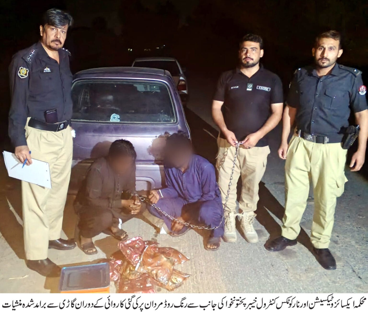محکمہ ایکسائز کی مردان میں کاروائی، 14 کلو سے زائد افیون برآمد، دو ملزمان گرفتار
