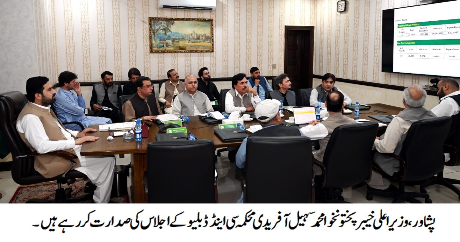 پشاور: وزیراعلیٰ خیبرپختونخوا محمد سہیل آفریدی کی زیر صدارت محکمہ کمیونیکیشن اینڈ ورکس کا اہم اجلاس منعقد ہوا جس میں صوبے میں جاری ترقیاتی منصوبوں اور روڈ انفراسٹرکچر پر پیشرفت کا تفصیلی جائزہ لیا گیا۔
